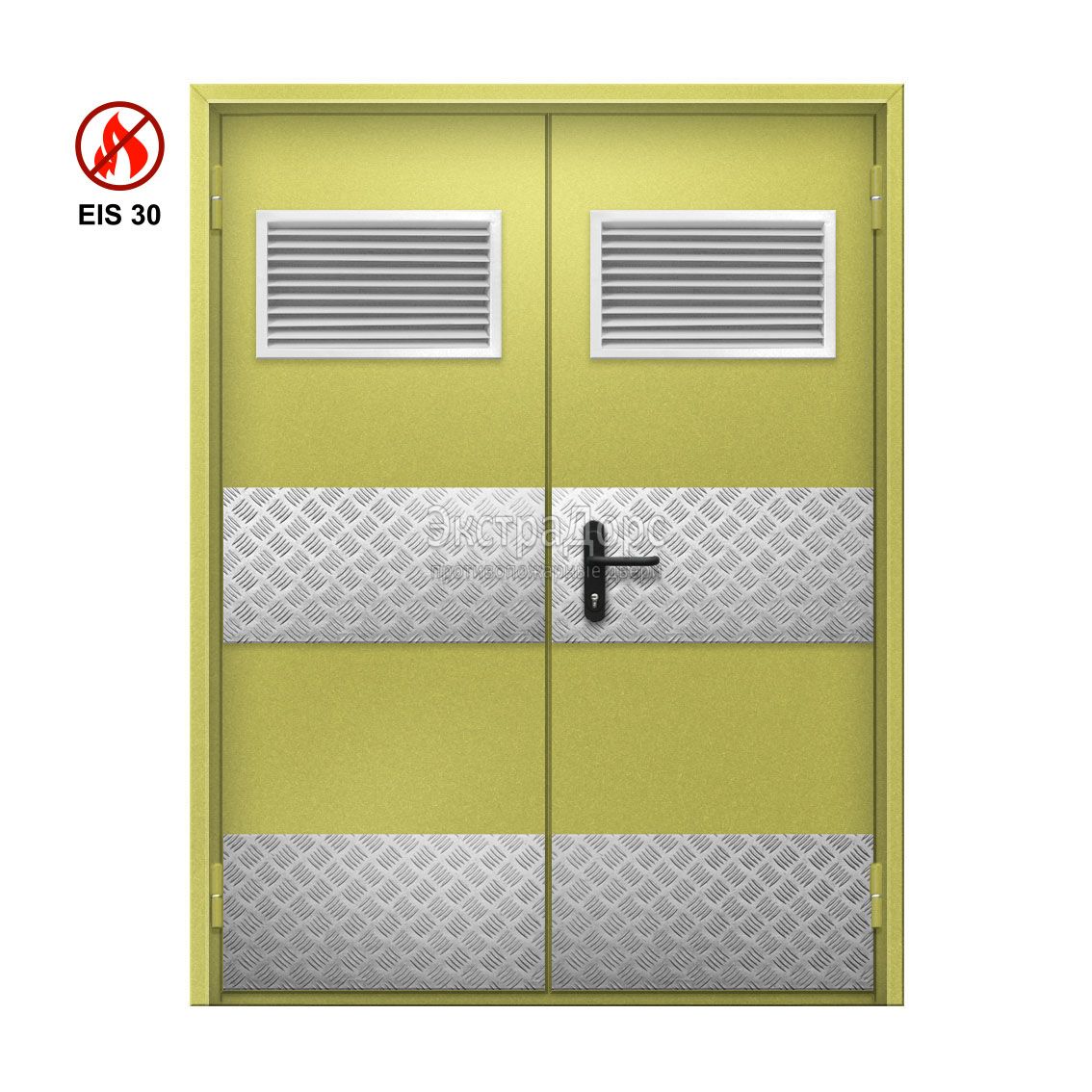 Двухстворчатая огнеупорная дверь EI 30 ДГ-02-EI30 ДП83 двупольная глухая с решеткой в Ивантеевке