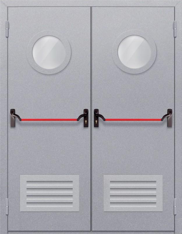 Дверь противопожарная без порога полуторная с квадратным стеклом