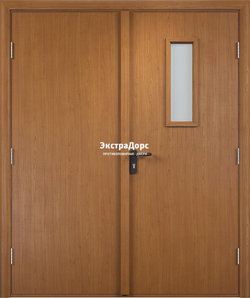 Двупольная противопожарная дверь ДМП-01-30 двухстворчатая со стеклом дуб в Ивантеевке