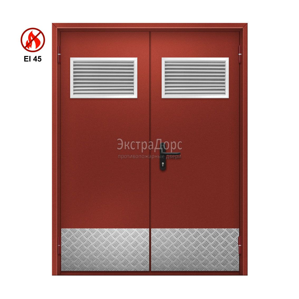 Двупольная огнестойкая дверь EI 45 ДГ-02-EI45 ДП123 двупольная глухая с решеткой в Ивантеевке
