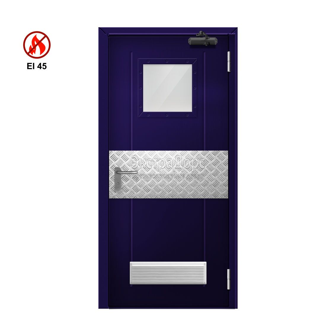Противопожарная дверь EI 45 ДОП-01-EI45 ДП146 однопольная остекленная с решеткой в Ивантеевке