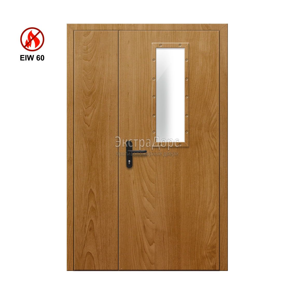 Двухстворчатая огнестойкая дверь с отделкой из МДФ EIW 60 ДОП-02-EIW-60 ДП45 двупольная остекленная