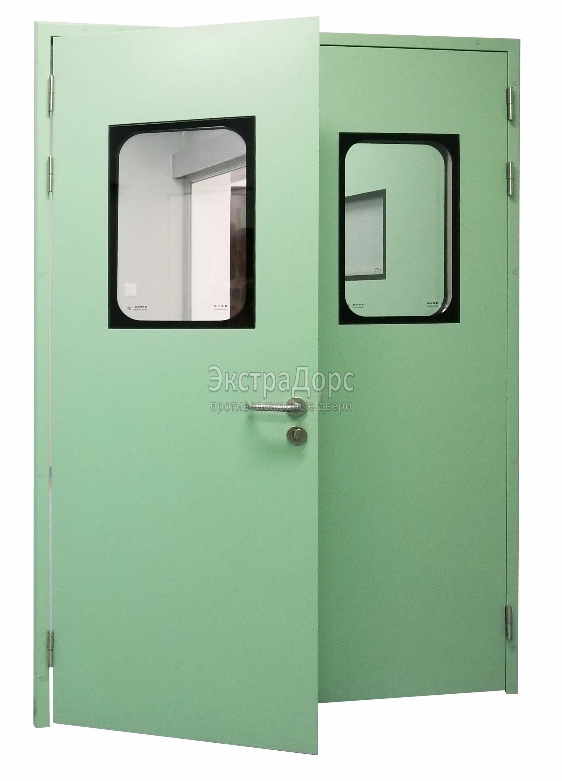 Двухстворчатая огнестойкая дверь EIW 60 зеленая со стеклом в Ивантеевке