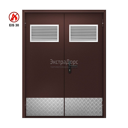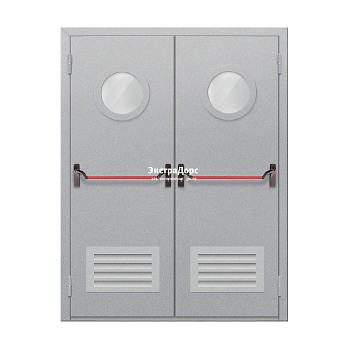 Двупольная огнестойкая дверь с решёткой EI 30 ДО-02-EI-30 двупольная остеклённая с иллюминаторами и антипаниками