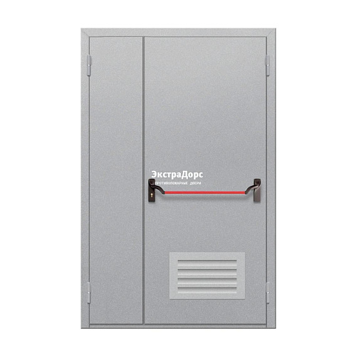 Двухстворчатая огнеупорная дверь EI 30 ДГ-02-EI-30 двупольная глухая с решётками и антипаникой