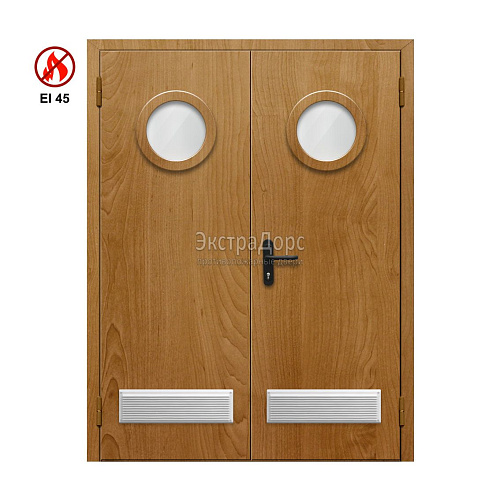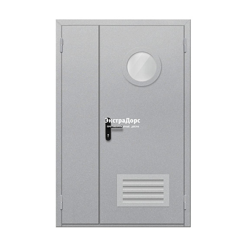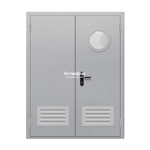 Двупольная противопожарная дверь EI 30 ДО-02-EI-30 двупольная остеклённая с круглым окном и решёткой