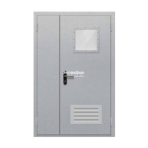 Противопожарная дверь EI 30 ДО-02-EI-30 полуторная остеклённая с иллюминатором и решёткой
