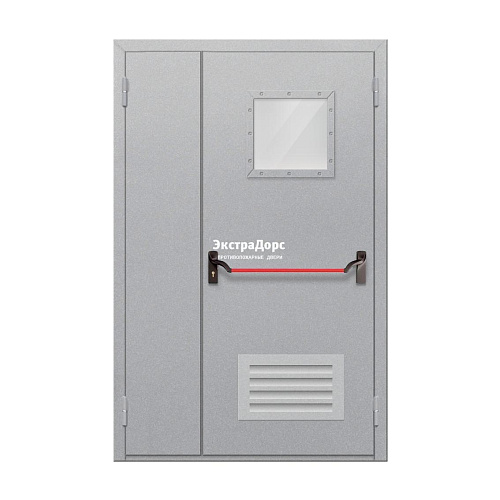 Противопожарная дверь EI 60 ДО-02-EI-60 полуторная остеклённая с антипаникой и решёткой