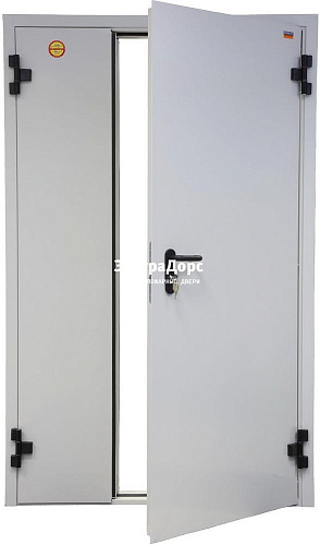 Двухстворчатая огнеупорная дверь дымогазонепроницаемая eis 60 с выпадающим порогом