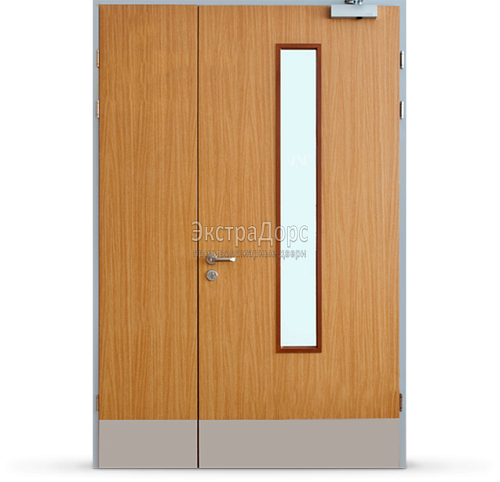 Двупольная огнеупорная дверь EI 60 двустворчатая с выпадающим порогом и стеклом