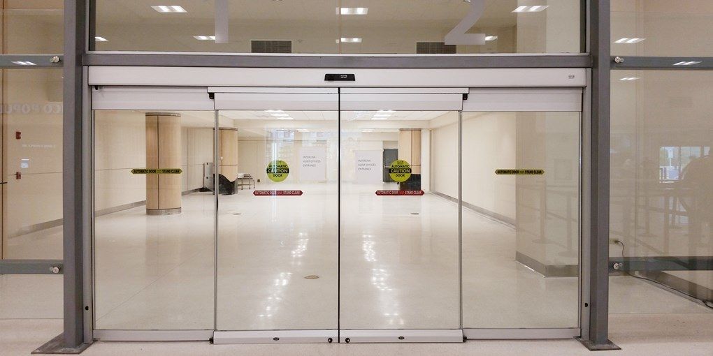 Противопожарная безрамная дверь со стеклом в бизнес центр в Ивантеевке