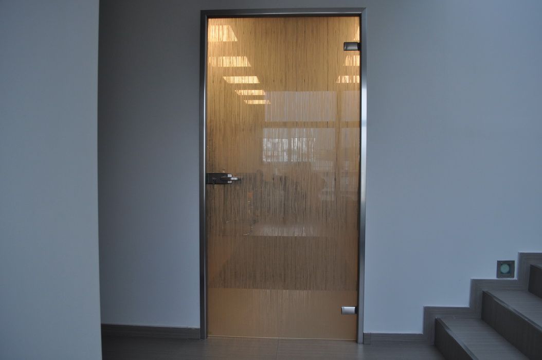 Противопожарная безрамная дверь со стеклом в БЦ в Ивантеевке