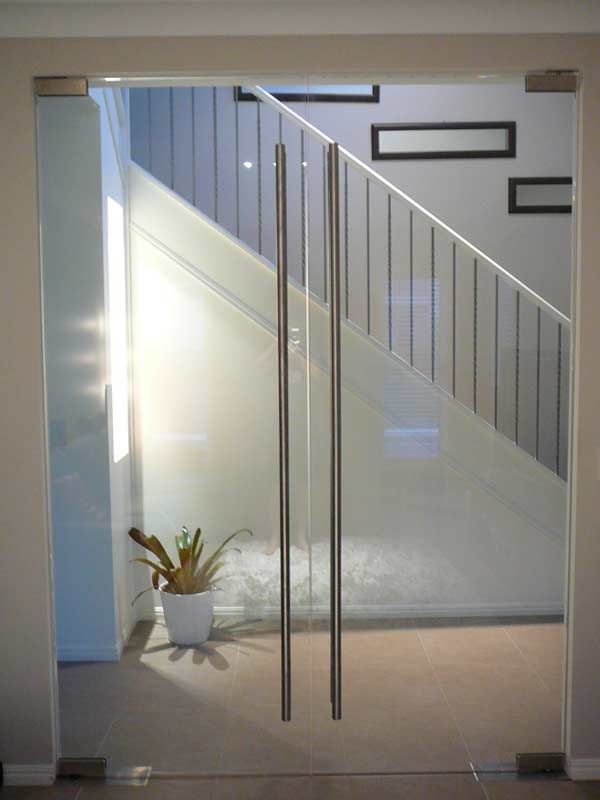 Противопожарная безрамная дверь со стеклом в частный дом в Ивантеевке